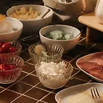 Huoneissa on tarjolla bidet, erillinen wc ja suihku sekä vedenkeitin, pesukone ja lasitavaraa.